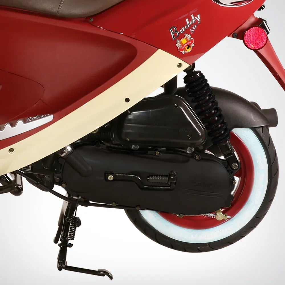 Whether solo or with a Buddy, this seat ensures a comfortable ride.Every new Buddy 50 International comes with Genuine Confidence Warranty