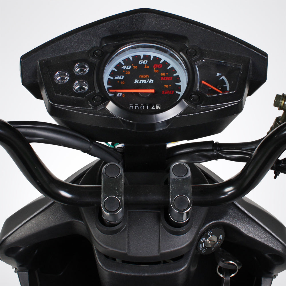 Equipped with upgraded features and stylish naked handlebars, this scooter delivers a dynamic and agile ride.