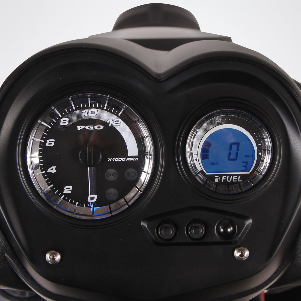 Digital speedo, tripmeter, odometer, clock, analog tachometer