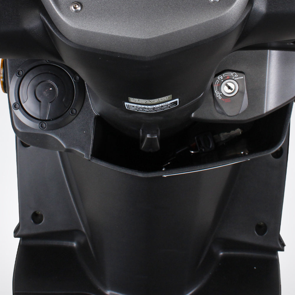 USB Charger, roomy cubby, bag hook, retractable passenger foot pegs, anti-theft ignition